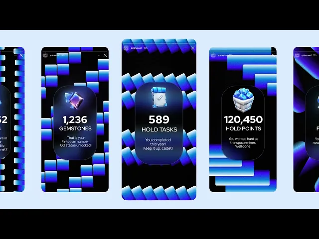 Delivered entirely through Telegram, the campaign highlighted milestones such as first login date, high scores, gemstones collected, HOLD points earned, and leaderboard rankings. Each card was vibrant, shareable, and crafted to feel like a reward, encouraging users to post their results and invite friends.